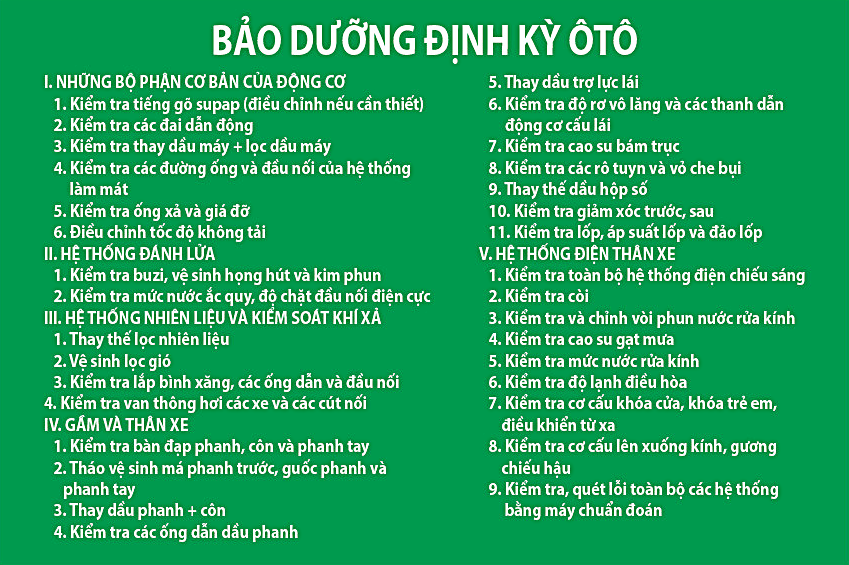 Các bước bảo dưỡng chi tiết mà quý khách sẽ được phục vụ như hình sau: